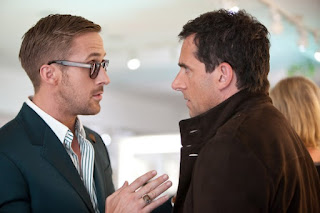 The film doesn't hesitate to start proceedings off, with the D word being uttered within a minute of meeting the Weavers we're not granted the usual overview of an apparently functioning marriage before being shocked as it breaks down. This isn't a problem, what is is the hurried nature of the film as we flit between the two narrative threads, Cal and Jacob's master/apprentice scenario, and Hannah's life crisis as she doubts her general happiness and direction. In wasting no time introducing us to the characters and their predicaments, it's just as quick to forget them. Hannah goes awol for a painfully long time, at first being set up as relevant and a lively player in the game, an actress as genuinely enjoyable as Emma Stone is always going to be missed. Though there's a reason for this absence to a point, the inclusion of a small scene or two could still have saved an awkward saggy midsection where the trajectory of the film is unfortunately woeful. At this stage we should be settled in and enjoying the films' mostly well guided array of humour and drama, instead we just worry, worry that it's going to fall flat on its face. The problem is that Crazy, Stupid Love never decides where its interest lies, whether its focal point should be the Weavers' wavering marriage, their son's infatuation with his babysitter, the babysitter's infatuation for Cal. These layers work and add up to make the film's standpoint convincing in the end, yet it struggles to juggle them competently throughout and buckles under the sheer amount it takes on. The real story after all, is the rekindling of affection between Cal and Emily, this is the film's centre and it forgets this too easily. Once again less is more.